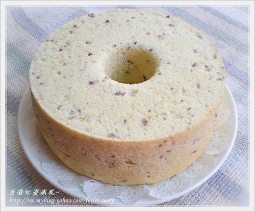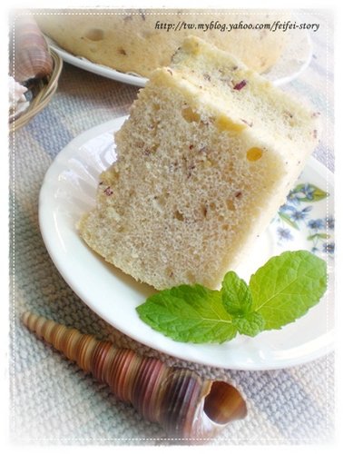 3.打發蛋白霜->與作法2混勻後入模->160度烤約50分.