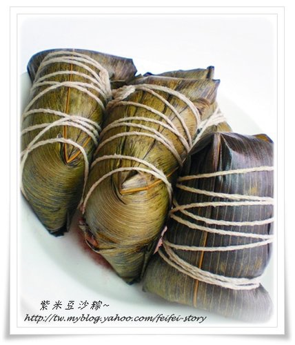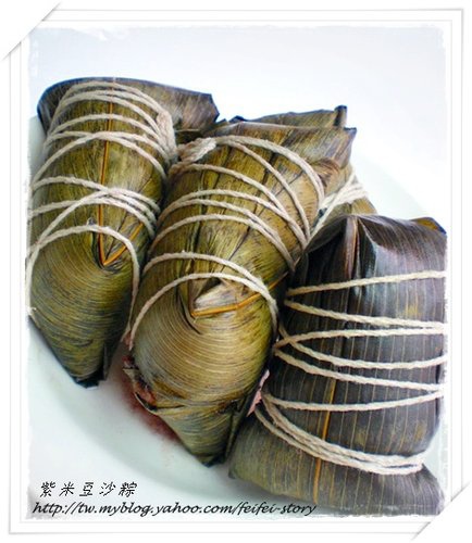 B:粽葉包入紫米及烏豆沙餡包成長形粽->快鍋煮30分->待安全閥下降取出.
