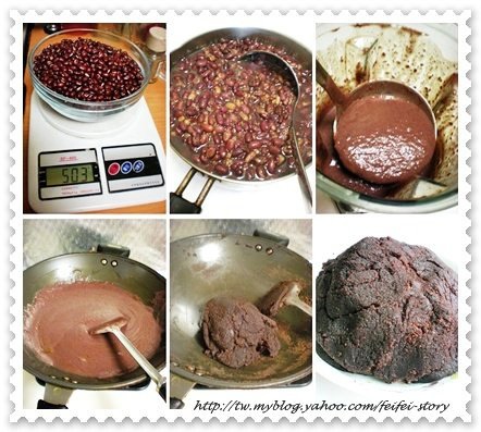 B:生豆泥(約1000g)入鍋中熬煮至水份略收乾->入植物油100g炒勻->入黃砂糖約200g左右&麥芽糖100g->開大火不斷翻炒至濃稠->轉中小火炒至豆沙呈不沾鍋之糰狀->取出放涼冷藏或冷凍保存.