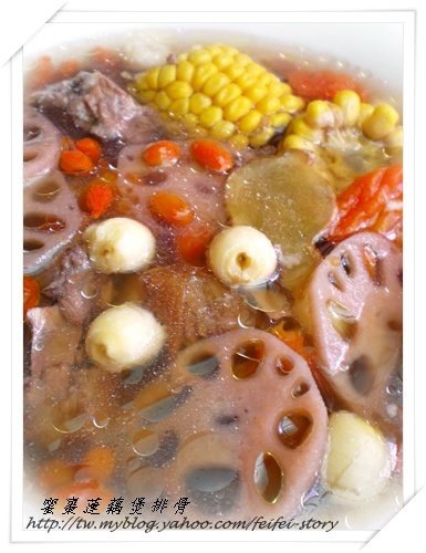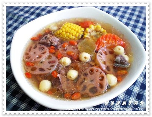 1.薑片+紅蘿蔔塊+蓮藕片+蜜棗+玉米+水+排骨=>全入快鍋中,