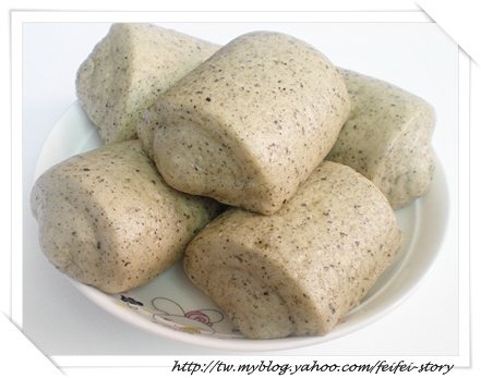 =>.所有材料入麵包機揉好麵糰->取出蓋上保鮮膜靜置約十分鐘