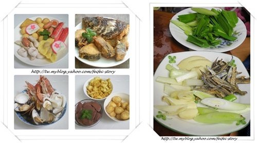 透抽.蛤蜊等海鮮類略為川燙後,湯汁留下 - 備好火鍋料.