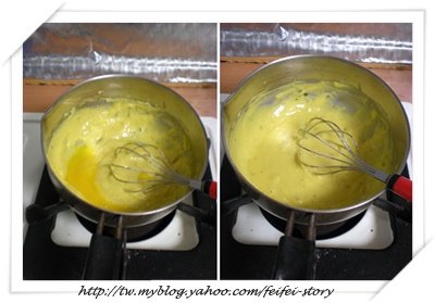 1.南瓜泥+橄欖油+少許砂糖,以小火煮至糖融離火.