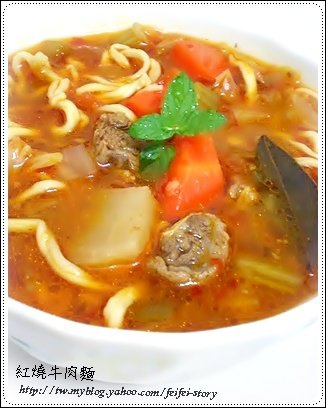 再加些青菜及麵條就成了香辣牛肉麵囉.