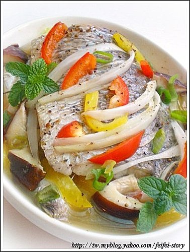 1.鮮魚以塩.米酒.黑胡椒.味霖.蒜末.義大利香料醃至入味,放進烤盤備用.