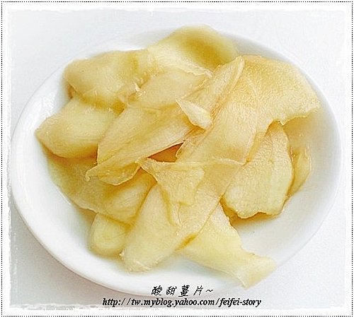 1.嫩薑洗淨切薄片後入糖抓勻,靜置約一小時出水