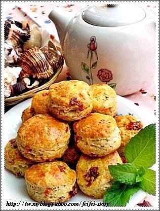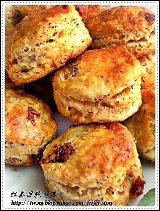 紅茶司康裏加了全麥麵粉和酒漬蕃茄乾,