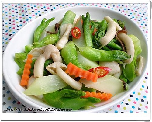 拍了幾顆蒜頭一起拌炒,再加點水略悶,