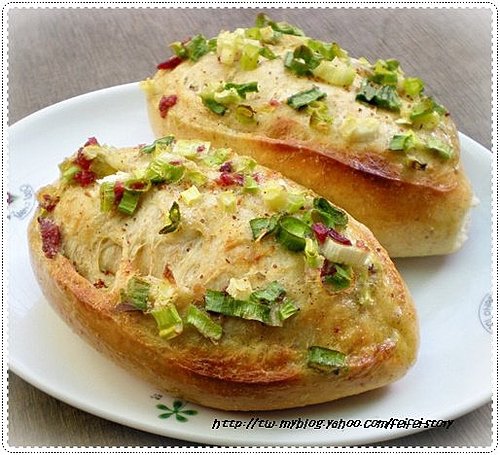 6.入烤箱前塗上一層蛋液,再鋪上蔥花餡,180度烤約15-20分即可.