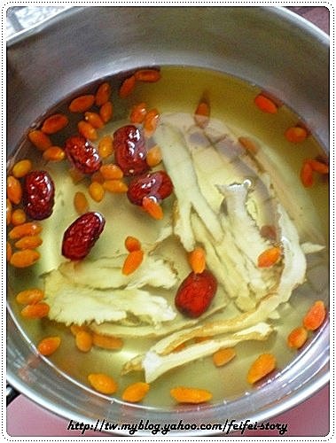 1.取一鍋子,放入當歸 、枸杞、 紅棗及水煮好放涼後,