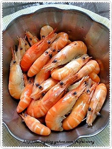 2.蝦子買回後剪除長鬚略為燙過後立刻入冰水中冰鎮降溫後瀝乾~