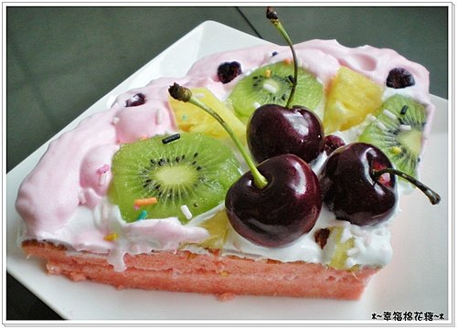 4.烤好後倒扣放涼,再塗鮮奶油放上水果即可.