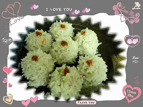 3.把作法1捏成圓球狀,外層裹上糯米放於盤上.上頭擺入枸杞子,放入電鍋蒸熟.